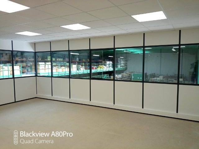La cabine d'atelier ou bureau d'atelier est composée d'une structure en cloisons amovibles aluminium avec laquelle il est possible de réaliser rapidement l'agencement de bureaux d'atelier en intérieur. Le plafond de la cabine industrielle est autoporteur. Selon votre besoin, il peut être nécessaire de réaliser un plancher.